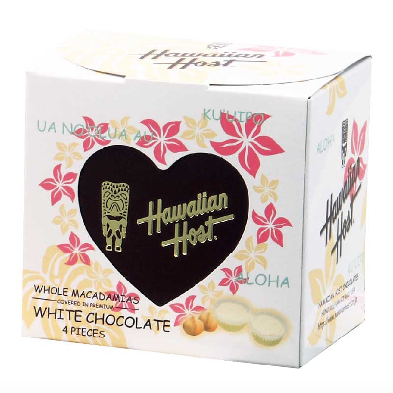 ★マカデミアナッツチョコハートギフトはホワイト柄を基調にピンクのハイビスカスが散りばめられたハートの小窓が特徴の可愛いギフトボックスタイプです。ハートの窓枠には写真やメッセージカードが差し込めるオリジナルおみやげにもなります🥰